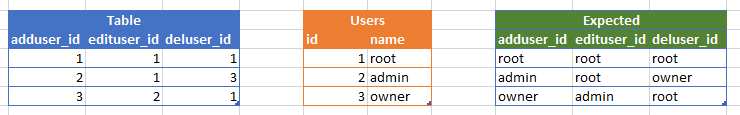 If there was one column, then everything is clear, we do join user_id = users.id and then use users.name.