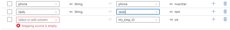 My source is a csv file with same column names as the column names in my destination table in Azure SQL.