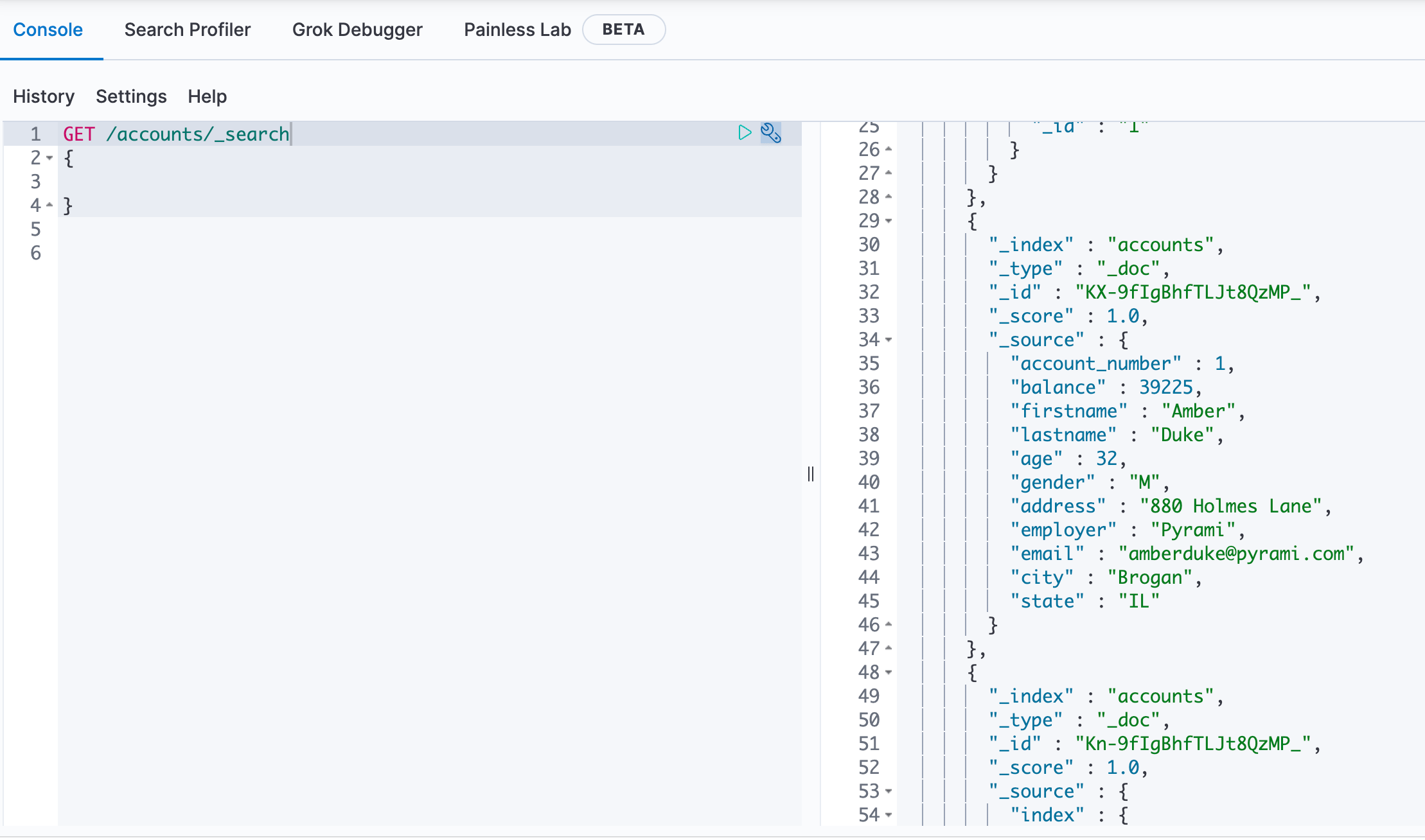 I am using Spring Boot and Spring Data Elastic. I have an accounts index data like below