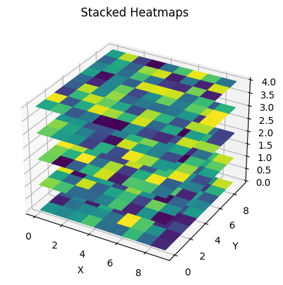 If you want N x M arrays as "heatmaps" stacked above each other along the z-axis this is one way to do it: