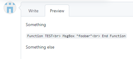 I’m having an hard time trying to insert code in a GitHub comment.