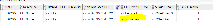 SELECT NORM_VERSION, NORM_FULL_VERSION, NORM_PRODUCT_VALUE, LIFECYCLE_TYPE, START_DATE,