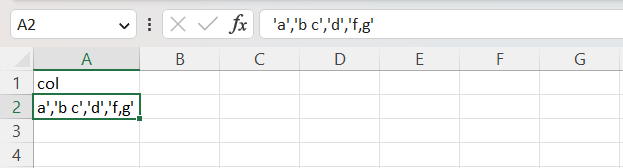 This is the data in that column : ‘a’,’b c’,’d’,’f,g’