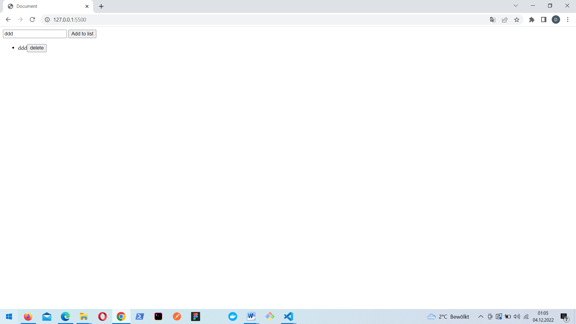 With the value of the input i create a new list elemnet with a delete button. Now i have troubles to delete my new created elemnt within the list.