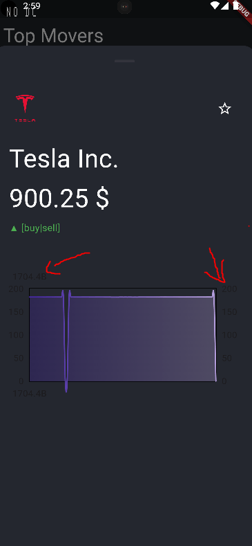 I am currently trying to use the FlChart library for flutter to display stock data. However i am having trouble with the titles on the side of the chart as i dont know why they are there. I have commented out the titlesData property from the LineChartData but there are still titles on every side. My question is how can i remove these titles. (Btw. ignore the weird looking graph)