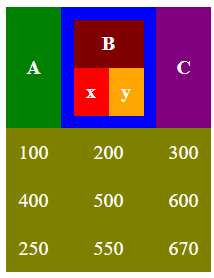 <tr><th style="background-color:maroon" colspan="2">B</th></tr>
