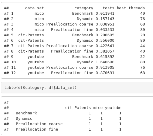Then we just pivot it to wide form, using data_set to be the new column names and tests as the value of those cells. We need to drop best_threads, either in the pivot_wider function, or beforehand: