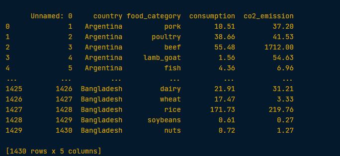 I want to calculate the variance and standard deviation of co2_emission for each food_category by grouping and aggregating. And it has to be in this format