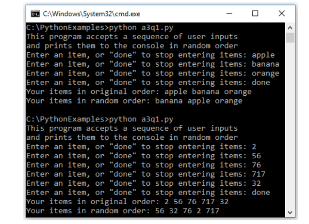 I am trying to replicate this python code but I am unsure how to go about asking for a user inputted list one at a time and then how to present the list in order and then randomly. If anyone could point me in the right direction I would appreciate it