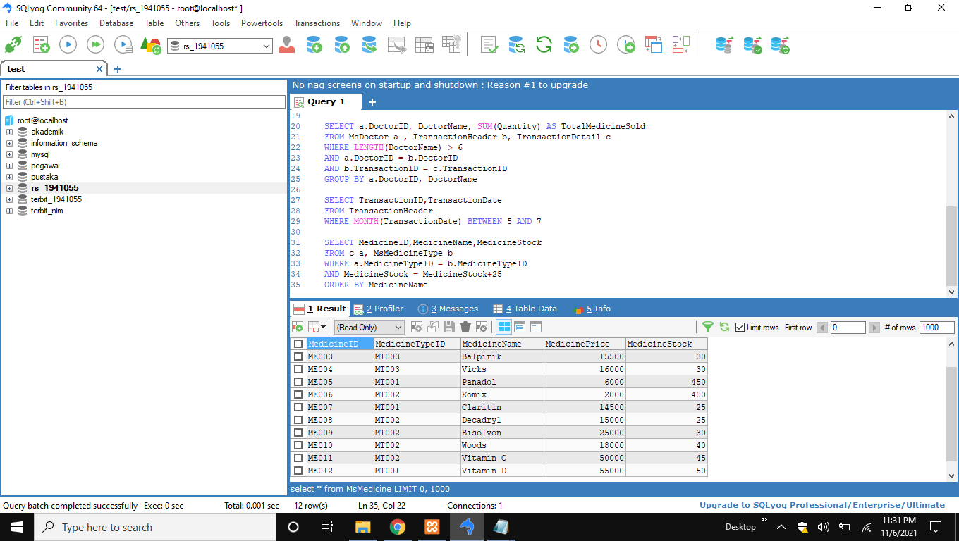 WHERE a.MedicineTypeID = b.MedicineTypeID