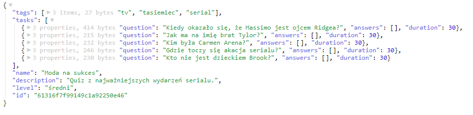 The JSON looks like this