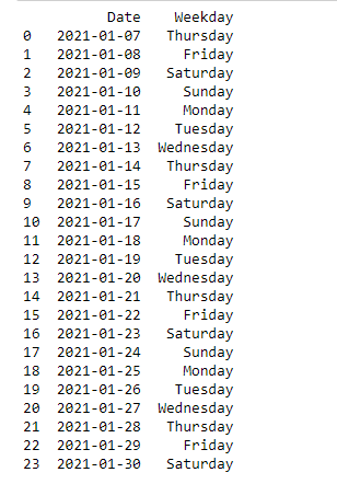 I’m using Python, and I have a Dataframe in which all dates and weekdays are mentioned.