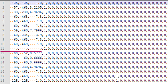 I have a dataset with a customized missing values which is the character `\?` but a cell with the missing value also contains whitespaces with inconsistent number of space characters. As in my example picture, at row 11, It could have 3 spaces, or 4 spaces.