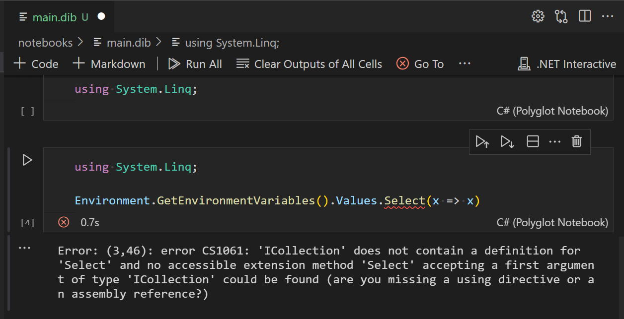 I’m trying to use LINQ in a C# (Polyglot Notebook).