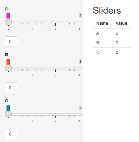 This is a follow up question to this Avoid DRY with 13 sliderInputs and 13 textInputs: