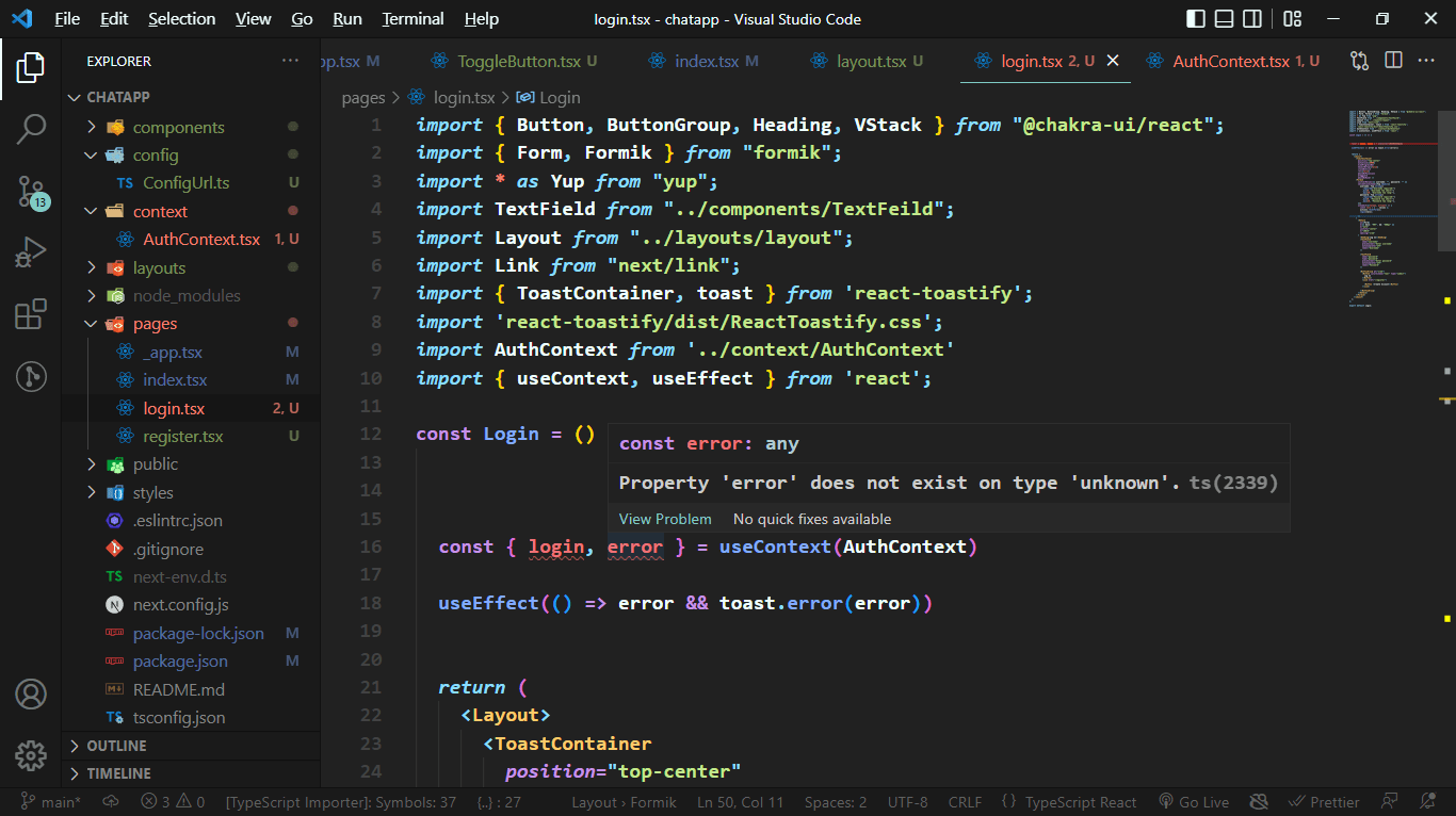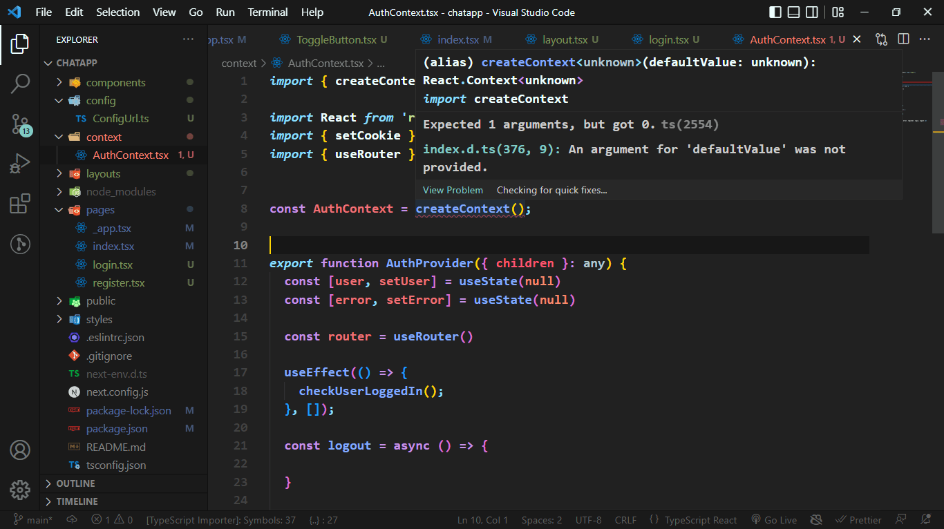 I’m new to the typescript world and I’m creating a new project in nextjs using typescript and wanted to add auth functionality with it so I’m using createContext I previously used javascript where we don’t need to define default value while creating context. these are some errors I’m getting in my vscode please if someone mentors me with code it would be great.