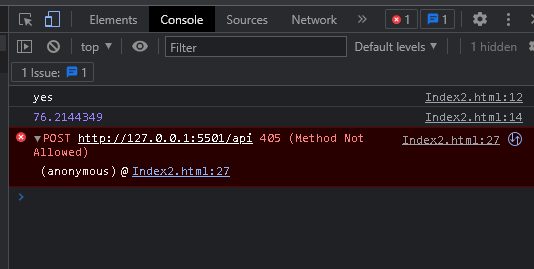 I was working with Express and node. Using Fetch to POST some data to server. I’m getting 405 err. I havent got any idea on how to solve this.