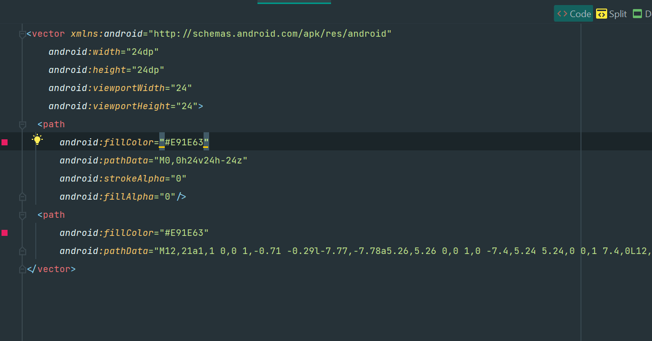 This is the code of like icon svg and I have changed the color to pink from black, but when I try to display the icon using compose it’s appearing as black only as u can see down