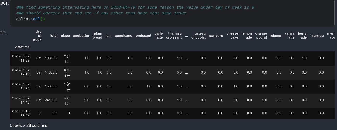 this is the df before i ran the code