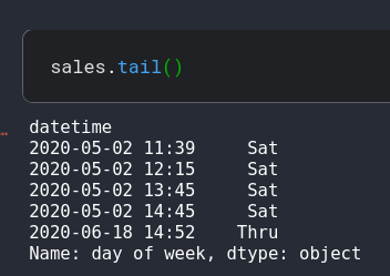 sales=sales["day of week"].replace(0, "Thru")