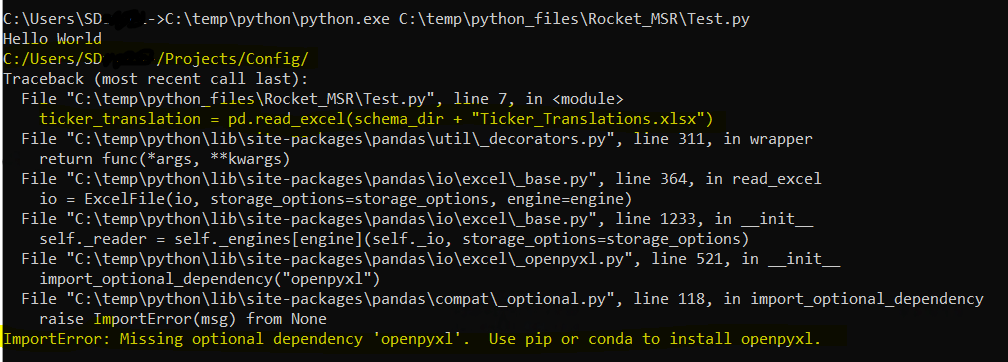 Packages like pip can be executed from the python executable using python.exe -m pip install openpyxl. If you don’t have sufficient firewall permissions (as you mentioned high security) you may not be able to connect to the package servers, which you would need to discuss with admin.