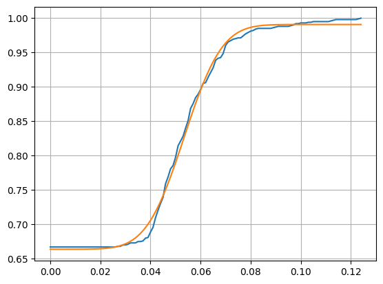 You are fitting the wrong model, use the CDF (integrated form) to get the sigmoïd shaped curve: