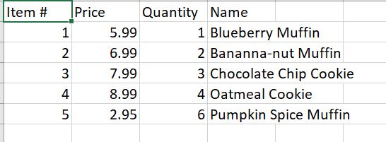 From what I understand, my add item is able to successfully input into my csv. For example, if I input 1, 2.99, 3, and Pumpkin into the inputs, and print(system.result), I can see the new dictionary in the list, and visually see it if I were to open the csv document.