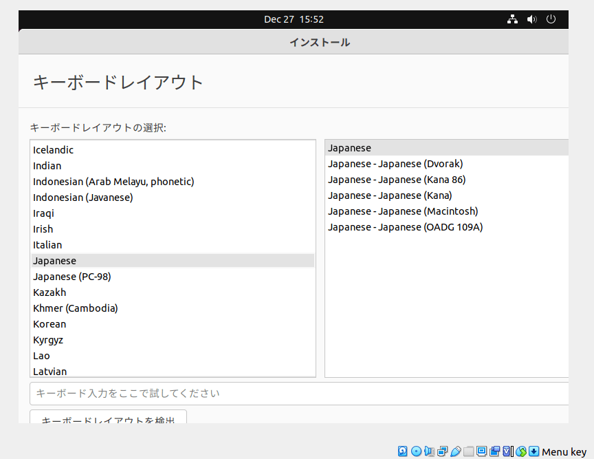 However when I choose Japanese as installation language, the keyboard selection screen looks like this: