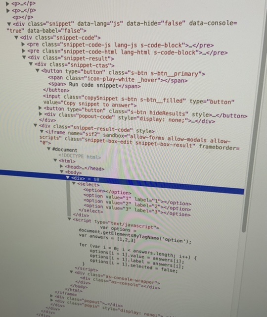 The Safari DOM inspector shows the <option> attributes are set. Curious.