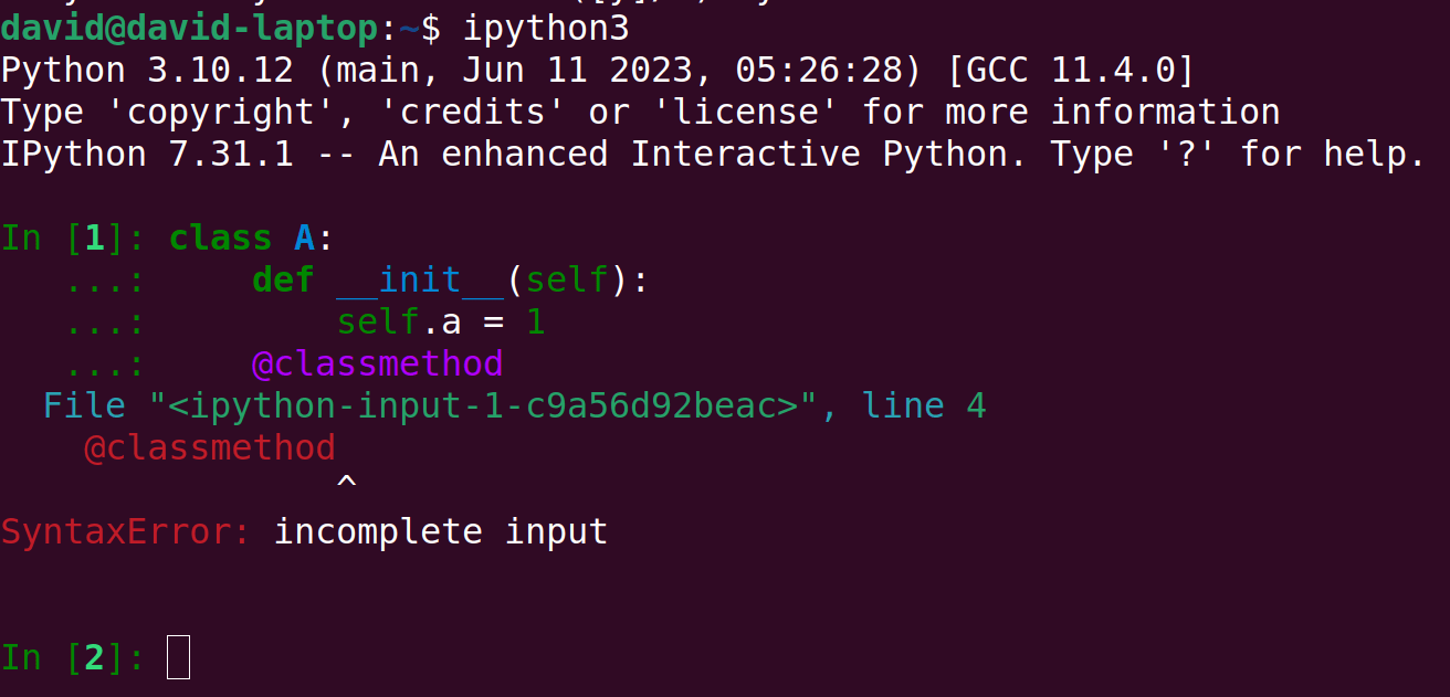 SyntaxError: incomplete input