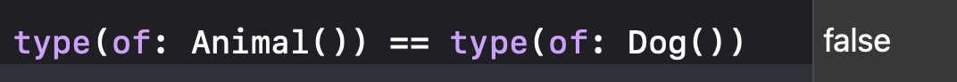 type(of: Animal()) == type(of: Dog())