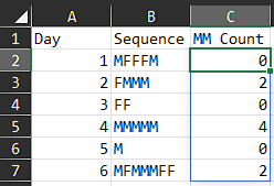 | 6 | MFMMMFF | 2 |