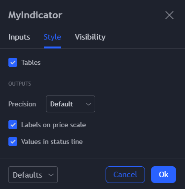 Using the "Inputs" section, I can assign the same color to the price line and the background of the table, so I would like to remove the color option in the "Style" section, because it’s redundant and unuseful.
