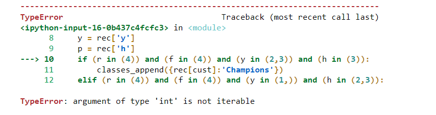So, I was working on the below code. But the problem is am getting an error in the 1st if-clause. I already tried replacing in keyword with == symbol. But it doesn’t do the check and ends up in else clause for all records/customers