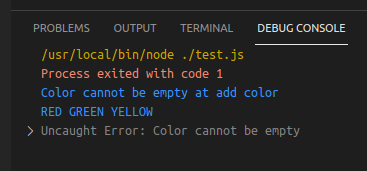 After calling the middleware function , the expected result was to print the error message only . But it print the name of colors as well.