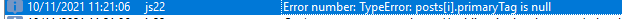"tag": posts[i].primaryTag ? posts[i].primaryTag.name : "N/A"