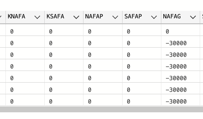 - 0 + -30000 + -30000 results to the 3rd row KNAFA field