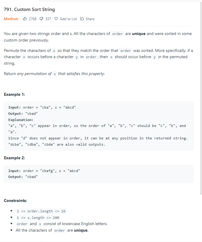 while I was cracking the leet code task I bumped into some unexpected behavior of the .sort function, so I couldn’t finish my task until I implemented the insertion sorting function myself which helped me to sort an array of chars properly.