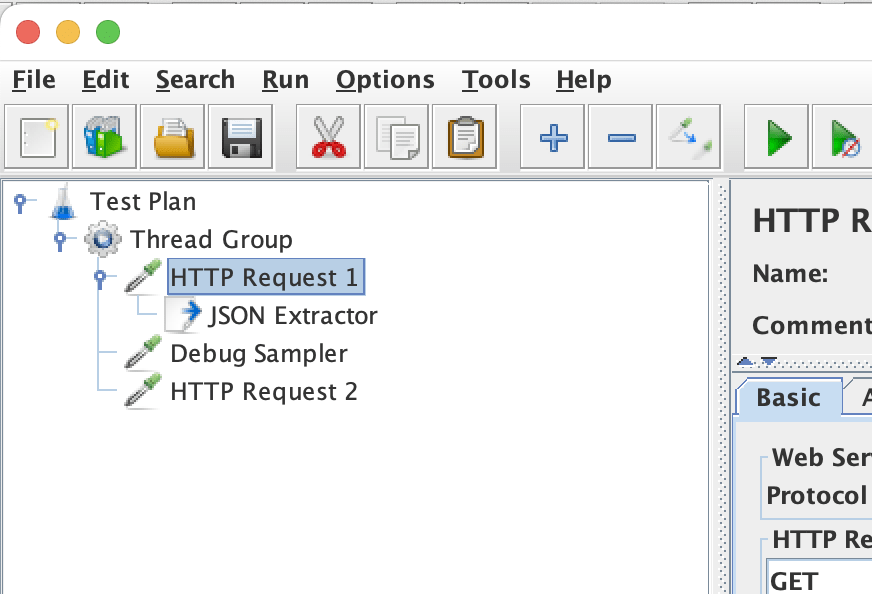 it means that the JSON Extractor will be executed after each Sampler, after HTTP Request 1 it will have correct anticipated value and after Debug Sampler it will not because the JSONPath expression won’t match anything and you will end up with the default value.