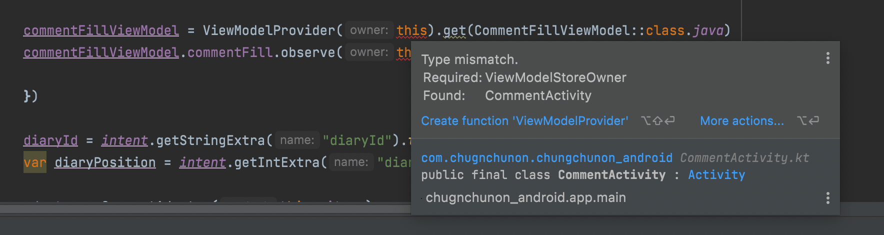 And when I tried to create ViewModel, I can’t use this as ViewModelStoreOwner.