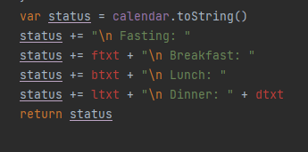 I need help concatenating a string in a kotlin viewmodel. I am trying to return what the code should print to the status text view. The formula determines from a Int what the status should be then outputs a message to the User. I am unsure as to what method should be used to create a string that I wanted to return.
