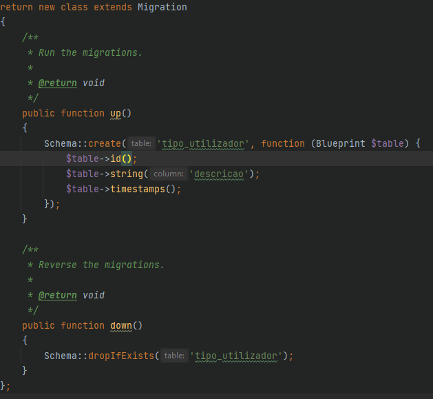 Schema::create('tipo_utilizador', function (Blueprint $table) {