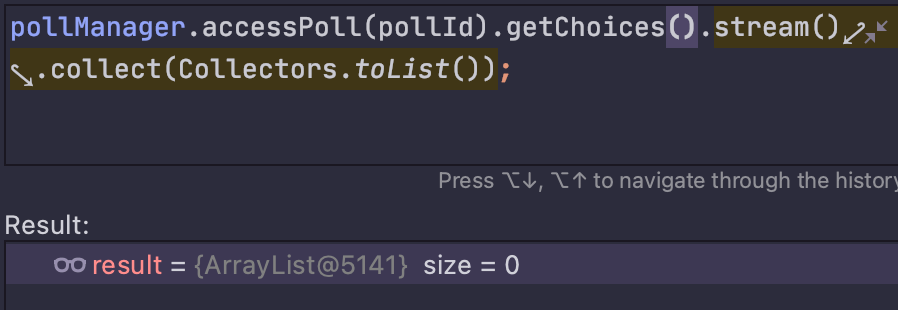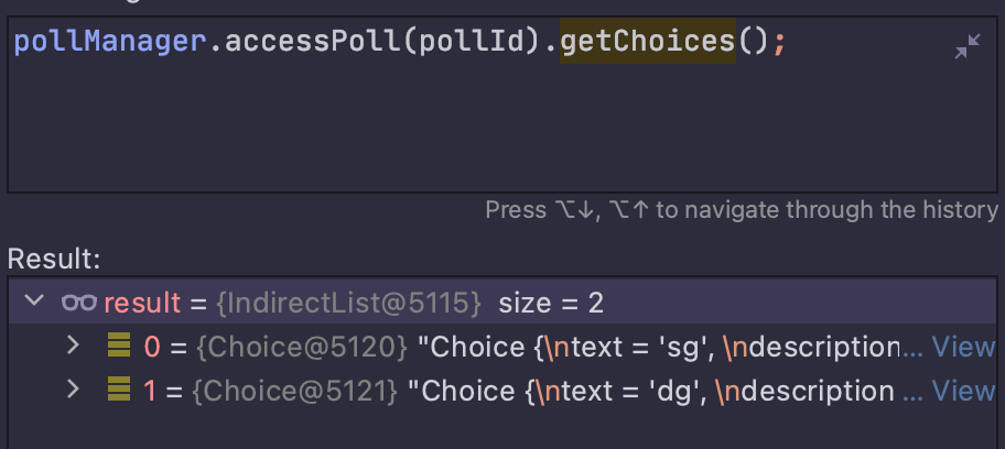 List<Choice> choices1 = pollManager.accessPoll(pollId).getChoices()