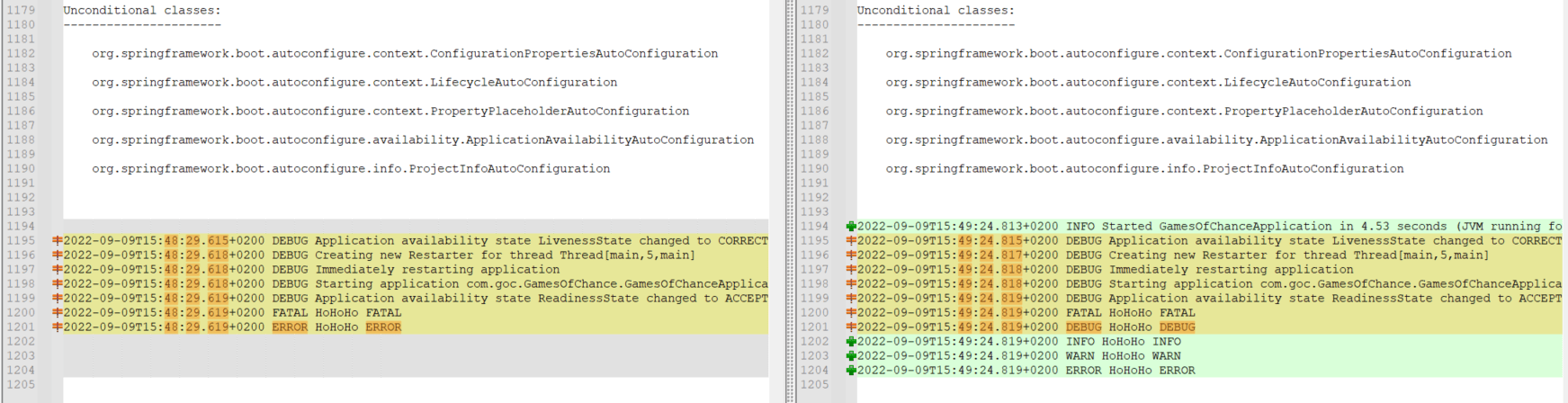 These 2 images are showing what is different when I change log levels between trace and error.