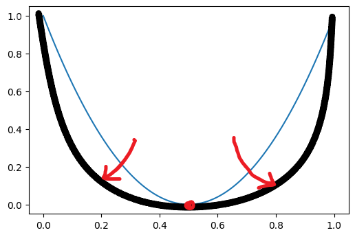 I’m having a parabola with both axes being from 0 to 1 as follows: