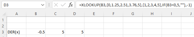 =XLOOKUP(B3,{-9999,0,1.25,2.51,3.76,5},{5,1,2,3,4,5},"",-1)