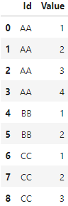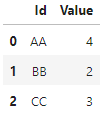 df = pd.DataFrame({'Id': ['AA', 'BB', 'CC'], 'Value': [4, 2, 3]})
