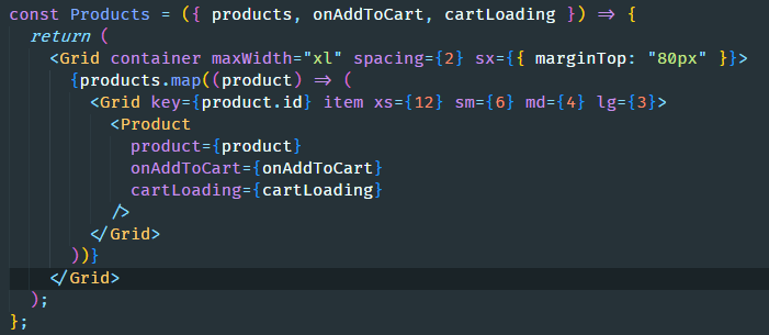 Then, at the <Grid> inside the Products component, change cartLoading={cartLoading} to cartLoading={cartLoading[product.id] || false}