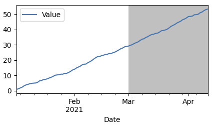 Currently the only things I was able to do is to create a series with only ‘Mar’ to ‘Jul’ as index with constant value to identify the "area", but ideally I would fill the background with some color to identify clearly both part of the graph (before mars it is data realised, after it is some prediction of my algo)
