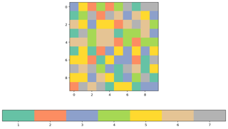 I have a 2d array, which contains integer values 1 – 7. I want to plot the array out with 1 color for each discrete value.